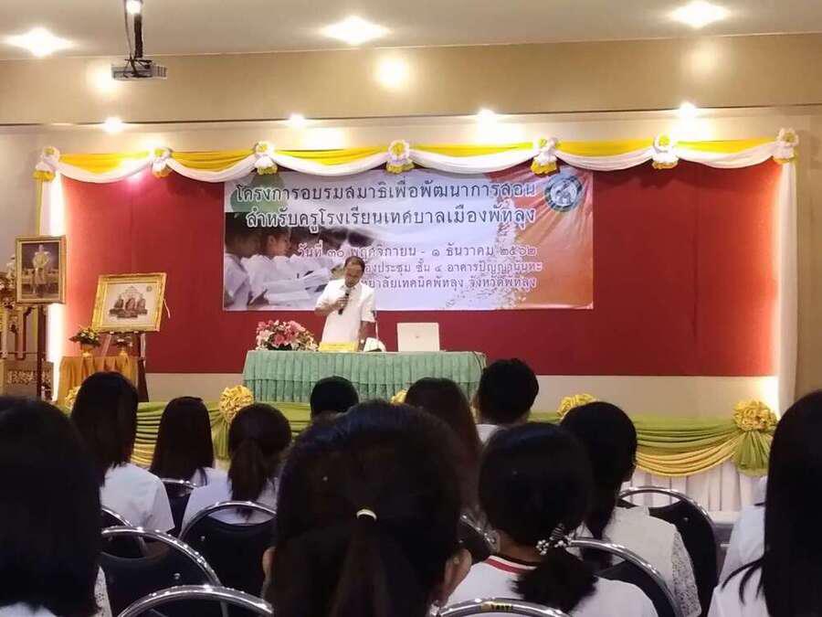 30พ.ย.-1ธ.ค. 62 โรงเรียนเข้าร่วมอบรม หลักสูตรสมาธิเพื่อพัฒนาการสอนสำหรับครูโรงเรียนสังกัดเทศบาลเมืองพัทลุง ณห้องประชุมวิทยาลัยเทคนิคพัทลุง S:0