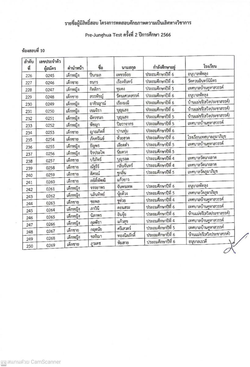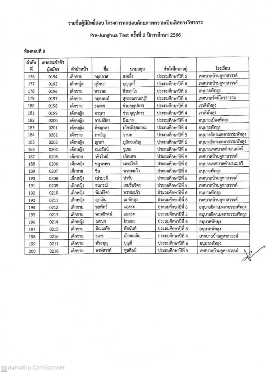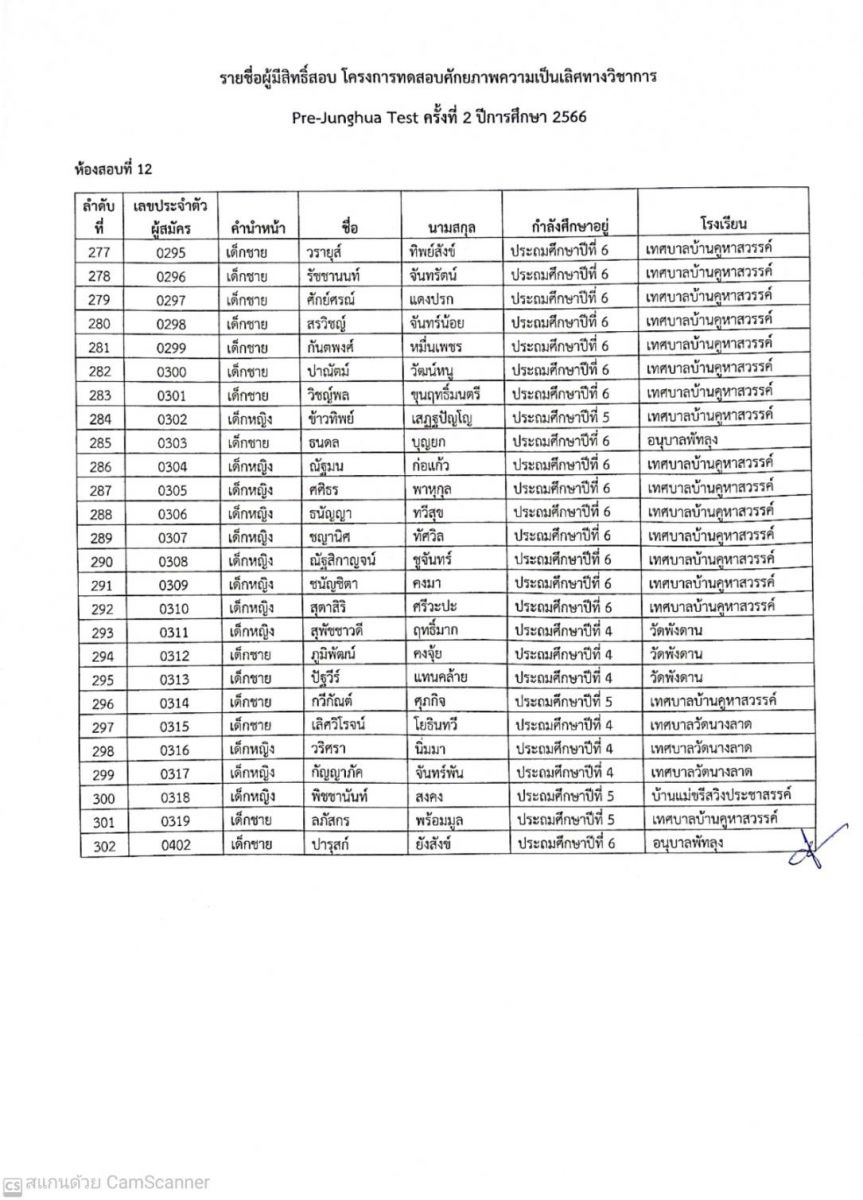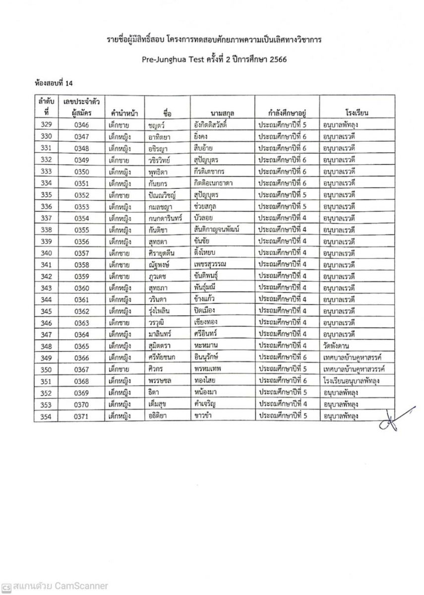 ประกาศรายชื่อผู้มีสิทธิ์สอบ Pre-Junghua Test