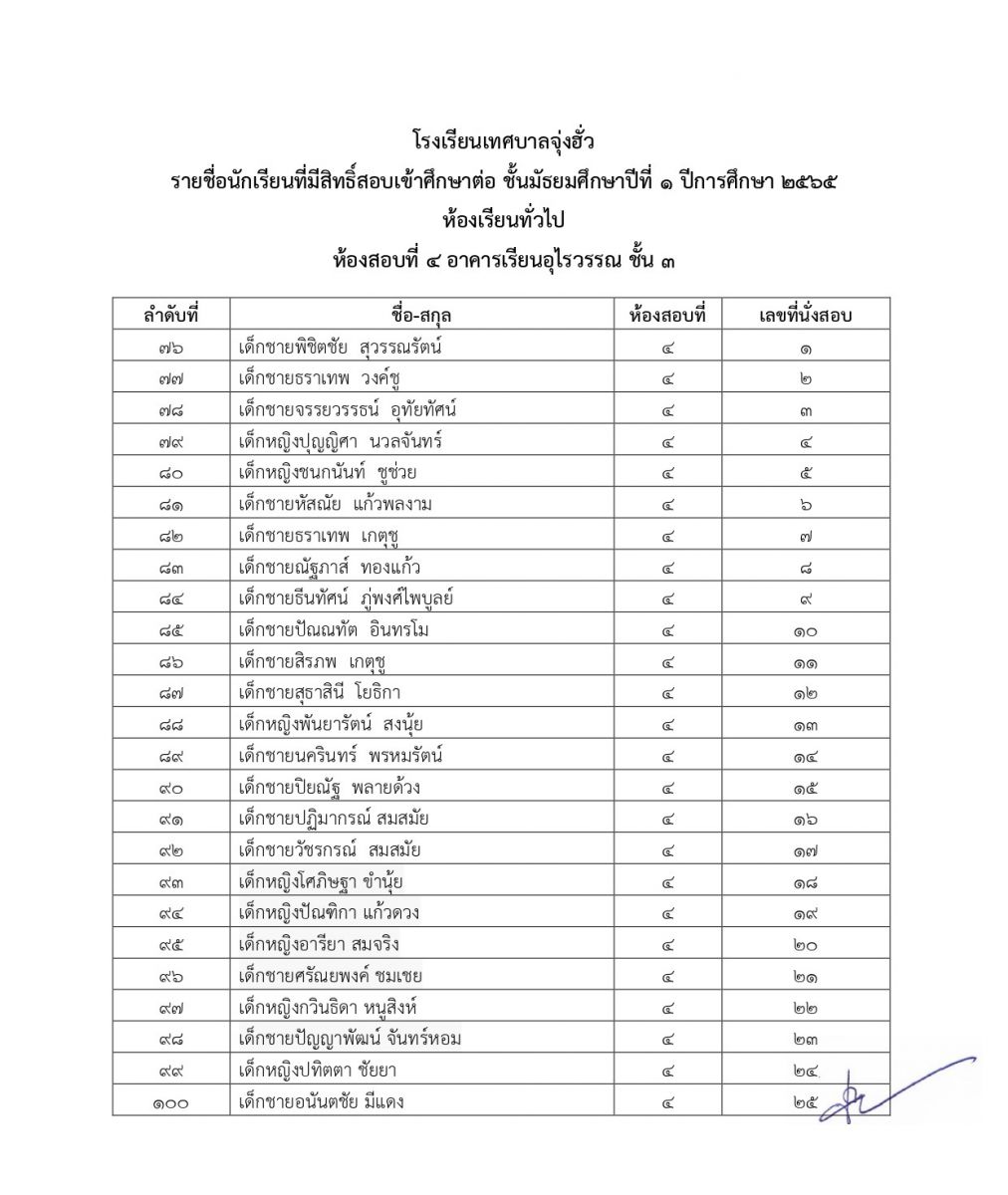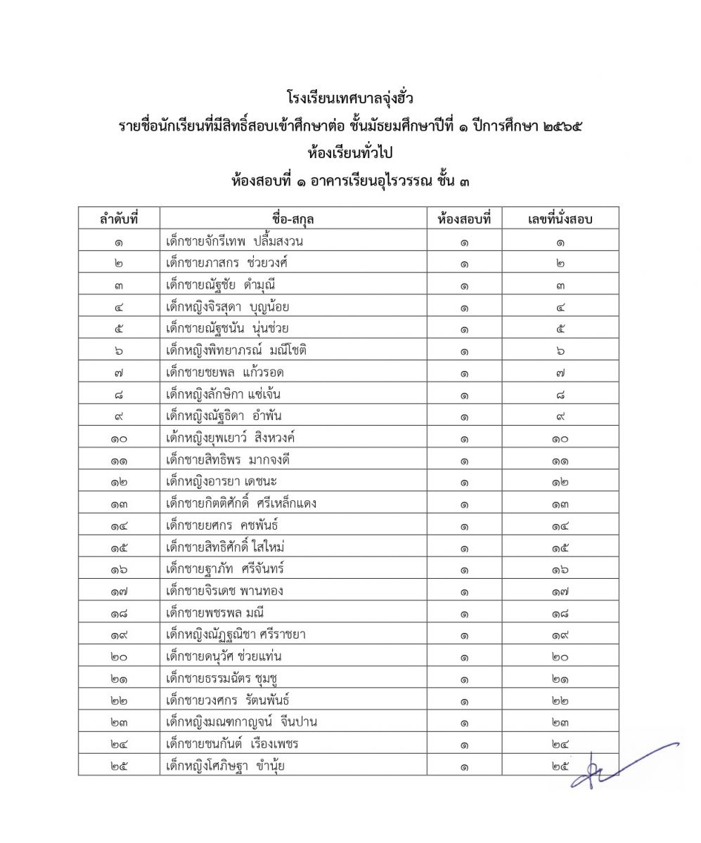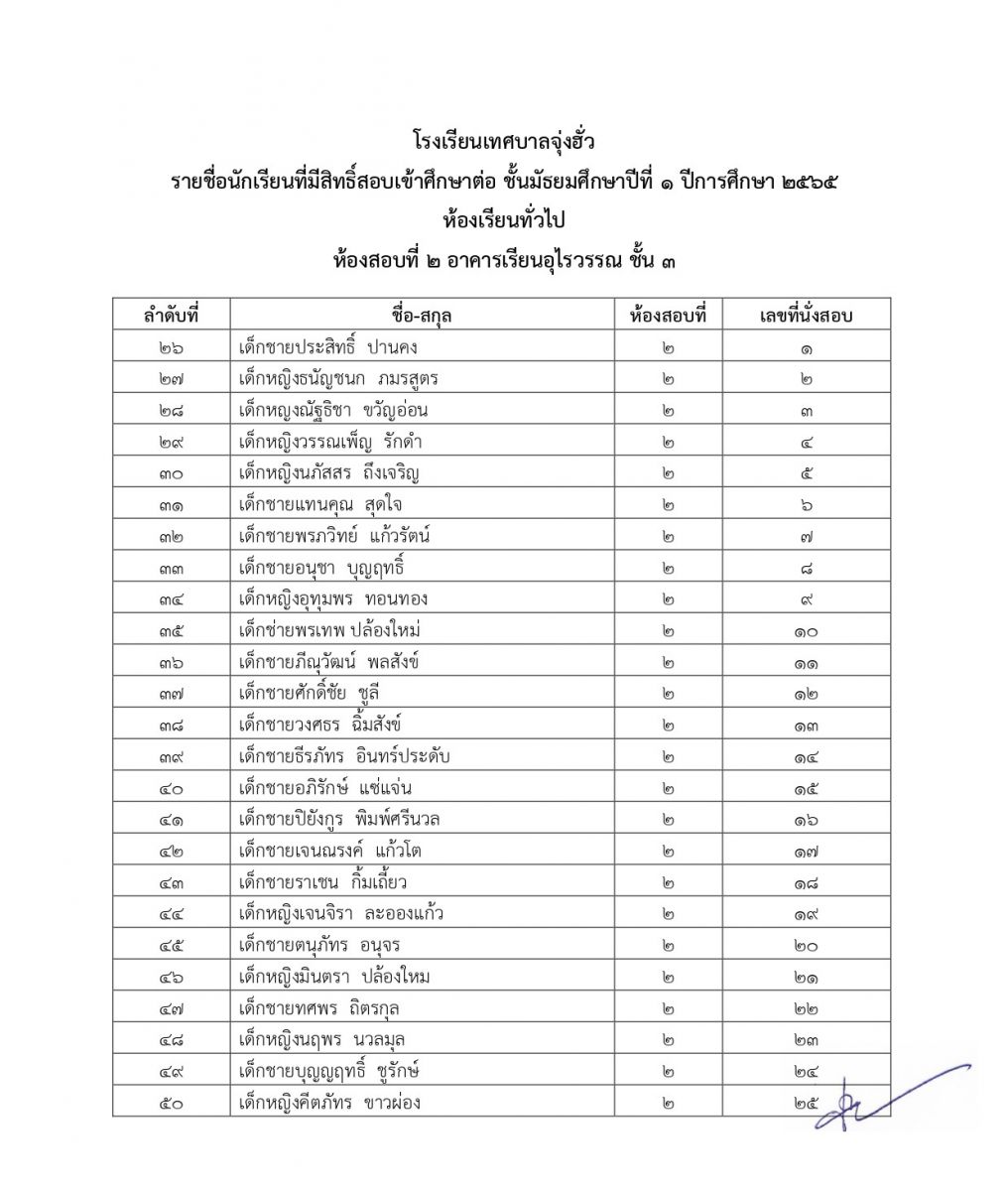 ประกาศรายชื่อผู้มีสิทธิ์สอบห้องทั่วไป