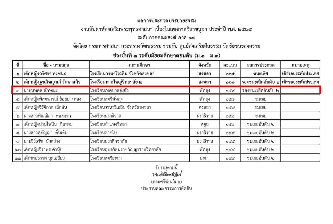 นายนพดล ลักษณะ นักเรียนชั้นมัธยมศึกษาปีที่ 2 ได้รับรางวัลรองชนะเลิศอันดับ 2 ระดับภาค การประกวดบรรยายธรรม